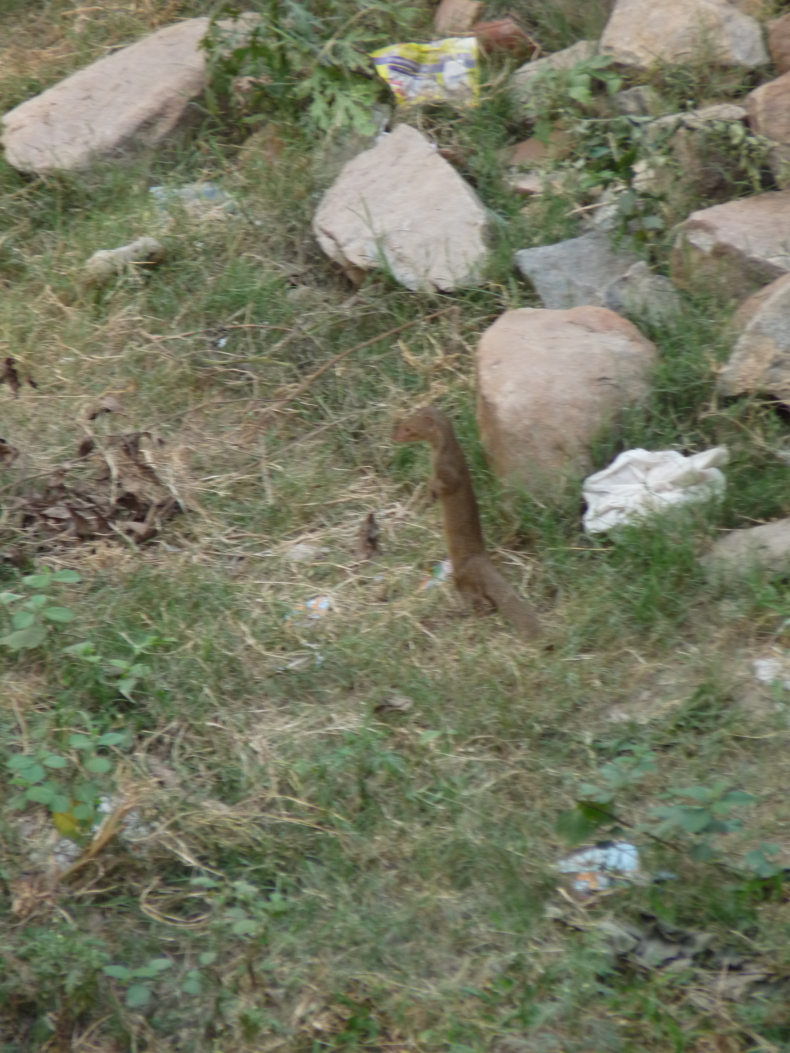 Mongoose, ferret, ‘land squirrel’ – probably not. I don’t know what they are but they look like a squirrel that has been ironed (/pressed). They walk in a line with their babies (like ducks). This flock had started out for a Sunday afternoon stroll when a giant hawk plopped right down on the ground next to them. The ‘land squirrels’ were too fast for the hawk – but they got nervous after that.