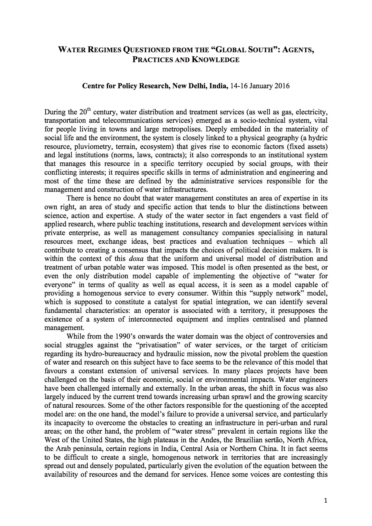 Centre for Policy Research, New Delhi, India, 14-16 January 2016